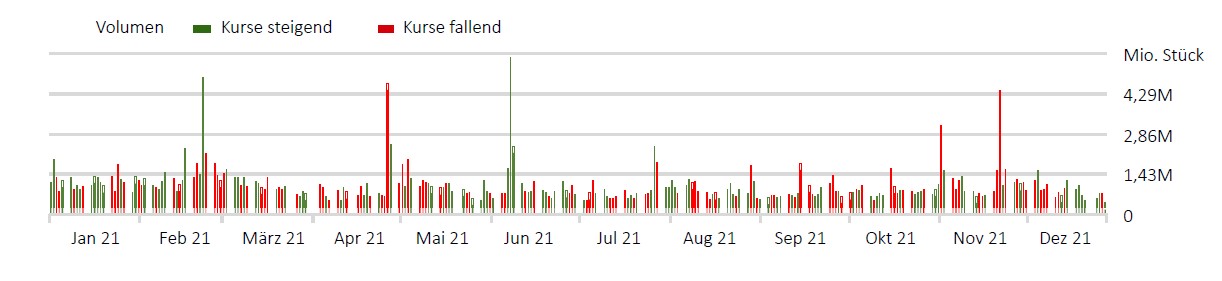 Zu Beginn des vierten Quartals bewegte sich die Aktie zunächst in einer Spanne zwischen 20 und 22 Euro. Auch die weiterhin guten Quartalszahlen konnten der Aktie am 04. November keine neuen Impulse verleihen. Anleger zeigten sich vielmehr besorgt über eine möglicherweise nachlassende Dynamik der Kundennachfrage im Jahr 2022, im Zuge dessen gab der Aktienkurs um 5% nach. Zusätzlich zum allgemeinen Abwärtstrend der Kurse durch rasant steigende COVID-19-Infektionszahlen, Inflationsängste und eine Sektorenrotation von Technologiewerten hin zu Value-Aktien resultierten erneut aufkommende Sorgen über eine Abschwächung der Nachfrage in AIXTRONs Kernmärkten am 24. November in weiteren deutlichen Kursverlusten, die die Aktie bis Mitte Dezember auf 16,34 Euro zurückfallen ließen. Mit positiven Nachrichten aus der Halbleiterbranche hellte sich die Stimmung wieder etwas auf, so dass die Aktie sich bis Jahresende wieder etwas erholen konnte.