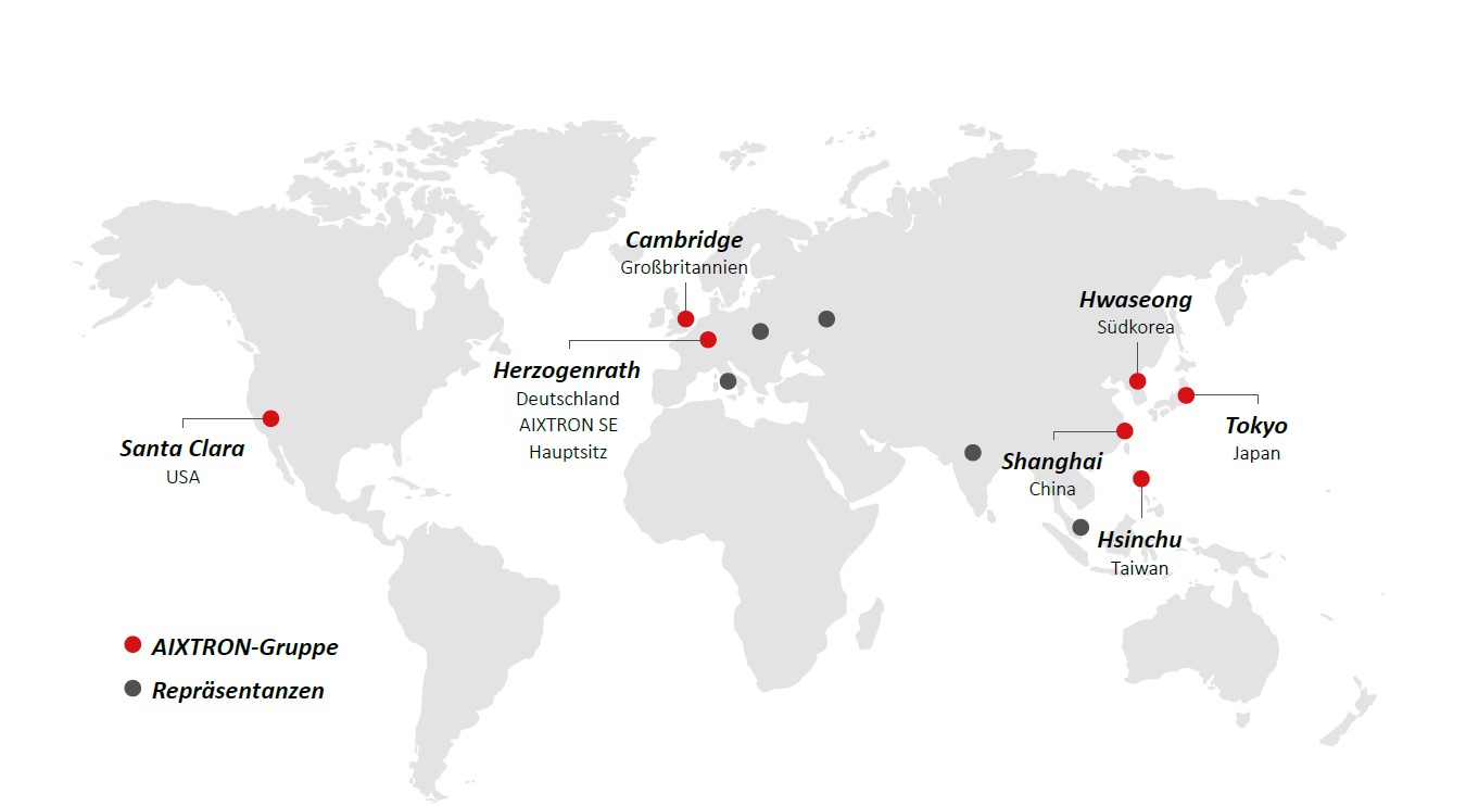 Der AIXTRON-Konzern umfasst die Muttergesellschaft AIXTRON SE mit Hauptsitz in Herzogenrath, Deutschland, und deren Tochtergesellschaften. Die AIXTRON SE war zum 31. Dezember 2021 direkt oder indirekt an 10 Gesellschaften beteiligt, die zum AIXTRON-Konzern gehören und voll konsolidiert werden. Eine Übersicht der Beteiligungsverhältnisse findet sich in Abschnitt 32 des Konzernanhangs.