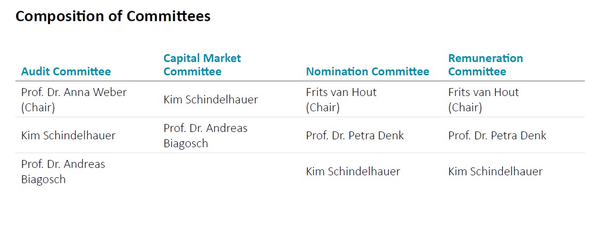 For the purpose of evaluating, supporting and implementing projects with capital market relevance, a Capital Market Committee has existed since 2014, consisting of two members, the Chairman of the Supervisory Board and another member of the Supervisory Board.