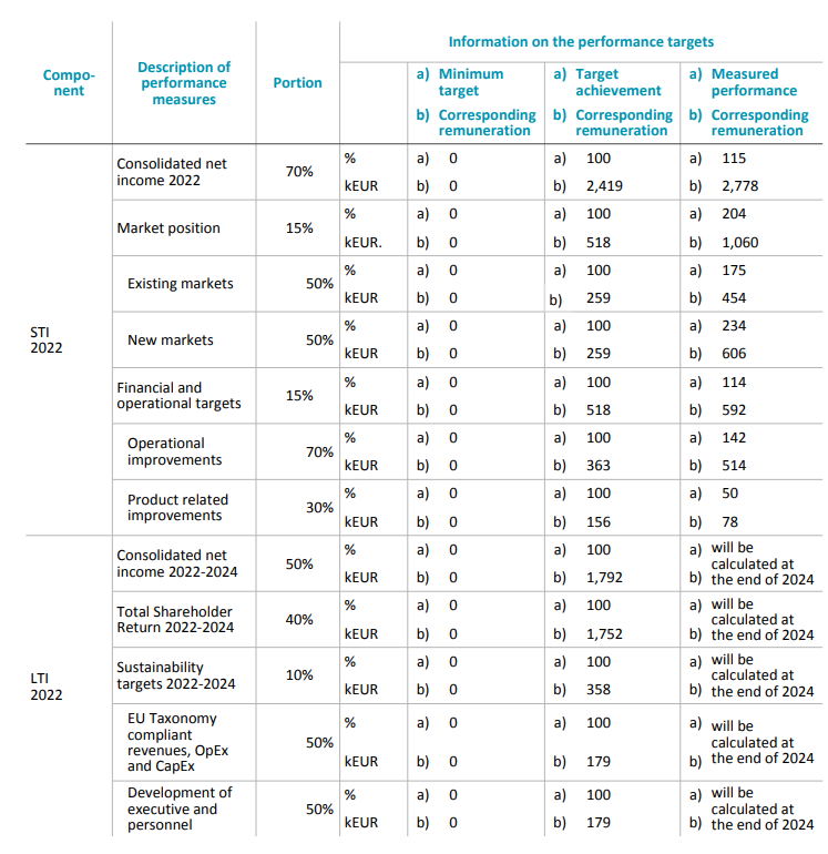 For the current fiscal year 2023, the Supervisory Board has defined the following target dimensions and performance criteria for the short-term variable remuneration (STI) in December 2022: