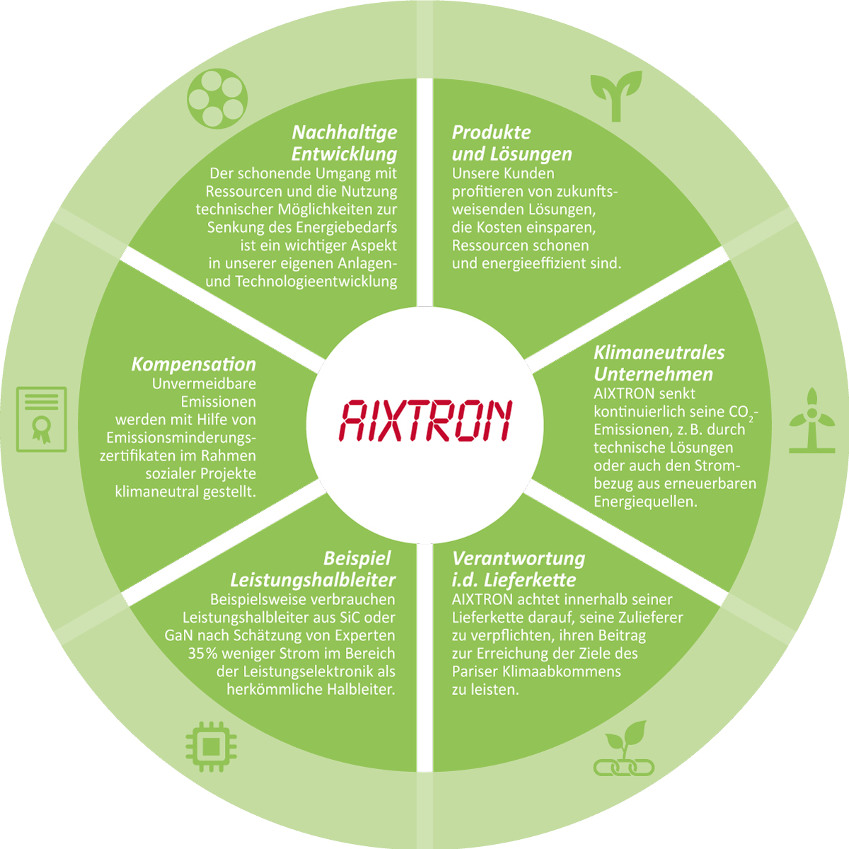 Seit 2019 werden direkte CO2-Emissionen stark reduziert und durch Klimaschutzprojekte ausgeglichen. Neben seinen innovativen Technologien und technischen Lösungen nimmt AIXTRON somit auch im Klimaschutz eine führende Stellung ein.