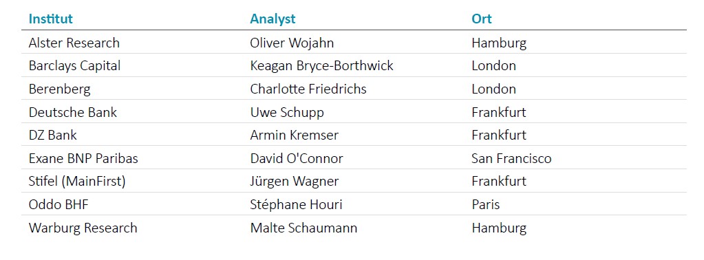 Aktuell wird die AIXTRON-Aktie von folgenden Finanzanalysten beobachtet: