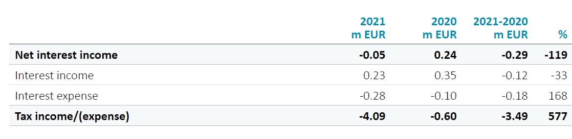 Profit before tax at EUR 98.9 million in 2021 was clearly higher than in the previous year (2020: EUR 35.1 million). This includes net interest result of EUR 0.05 million.