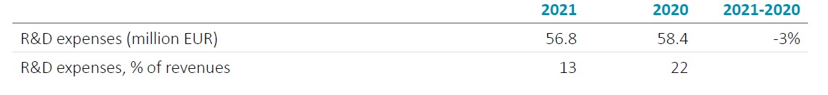 Selling, general and administrative expenses were higher in a year-on-year comparison at EUR 35.4 million (2020: EUR 27.7 million). Relative to revenues, selling, general and administrative expenses amounted to 8% (2020: 10%). The development was mainly attributable to higher variable remuneration.