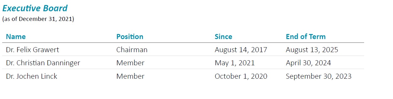 The appointment of Executive Board member Dr. Bernd Schulte regularly ended at the close of March 31, 2021. Dr. Bernd Schulte retired on March 31, 2021. The Supervisory Board appointed Dr. Christian Danninger as a new member of the Executive Board in the function of Chief Financial Officer (CFO) effective May 1, 2021. The appointment was made for three years.