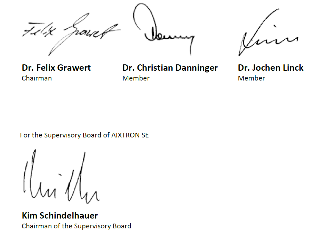 AIXTRON is committed to the principles of transparent and responsible corporate governance aimed at creating sustainable value. Through appropriate management and supervision of the Company, we – the Executive Board and the Supervisory Board – aim to merit the trust placed in us by our shareholders, the financial markets, our customers, business partners, employees, and the general public. We are convinced that this approach to corporate governance, as well as the responsible actions of our employees, are an essential basis for the success of our Company.