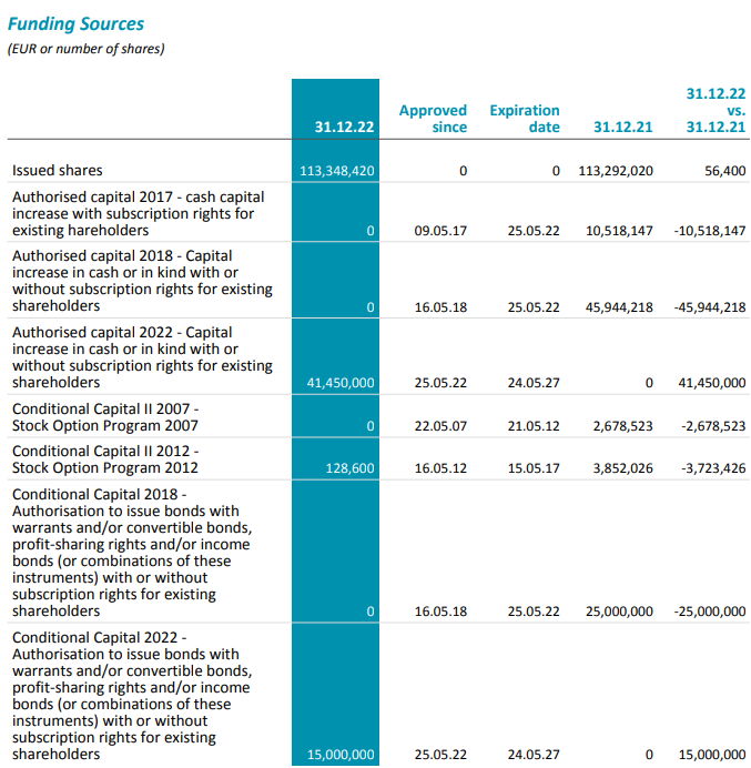 In accordance with Section 71 (1) no. 8 German Corporations Act, AktG, the Company is authorized until May 24, 2027, with the approval of the Supervisory Board, to purchase its own shares representing an amount of up to 10% of the share capital existing at the time of the resolution or – if this value is lower – at the time of the exercise of the authorization. This authorization may not be used by the Company for the purpose of trading in own shares. The authorization may be exercised in full, or in part, once, or on several occasions by the Company, by companies dependent on the Company or in which the Company directly or indirectly holds a majority interest, or by third parties appointed by the Company. The shares may be purchased (1) on the stock market or (2) by way of a public offer to all shareholders made by the Company or (3) by way of a public invitation to submit offers for sale.